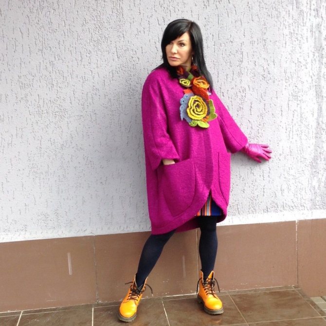 - Фасон оверсайз. Такая вещь будет хорошо смотреться практически в любом гардеробе и может носиться как с юбкой-карандашом, так и с обыкновенными джинсами. Этот фасон отличается удобством и универсальностью. Единственный минус – его нельзя носить девушкам небольшого роста, а также дамам с пышными формами – им он способен действительно визуально изуродовать фигуру.