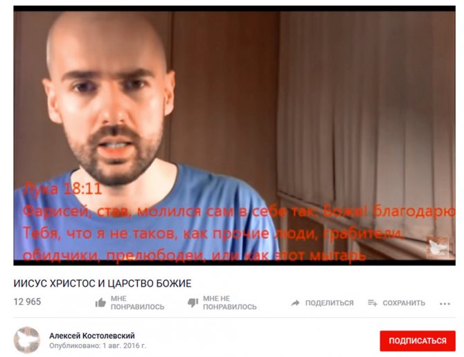 Есть предположение, что парень психически не здоров. Более 10 лет назад он начал записывать видеоролики с проповедями, выкладывал в интернет. Костолевский уверен, что видел Бога, общается с ним по четыре раза в неделю. Парень призывает всех людей покаяться и прийти в веру, напоминает фанатика и внешне нездорового человека.