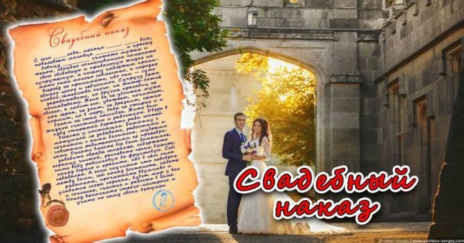 Приказ огласить для всех присутствующих, одобрить его бокалами вина, с тем, чтобы (имя жениха)
