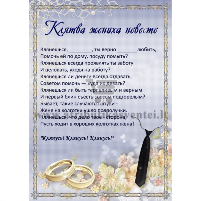 Свадебная клятва жениха и невесты (примеры)