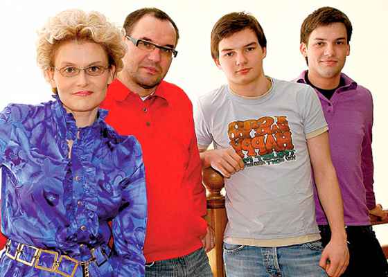 На этом фото вы видите Елену Малышеву, ее мужа Игоря Малышева, их сыновей Юрия и Василия.