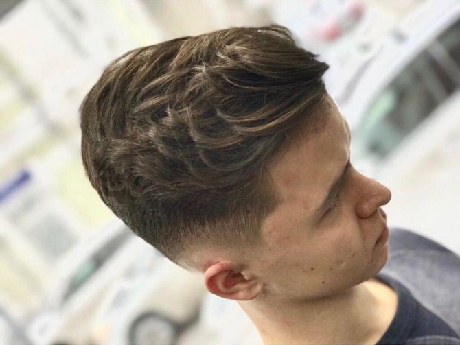 Эта стрижка во многом напоминает андеркат, но ее главной особенностью является мягкий, почти незаметный переход от коротких волос на висках и затылке к длинным прядям на макушке и в районе челки. С челкой, кстати, можно пофантазировать – например, косая асимметричная прекрасно вписывается в молодежный стиль. Мужчинам с залысинами рекомендуется зачесывать челку назад.