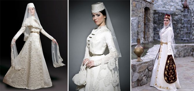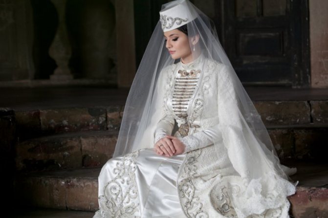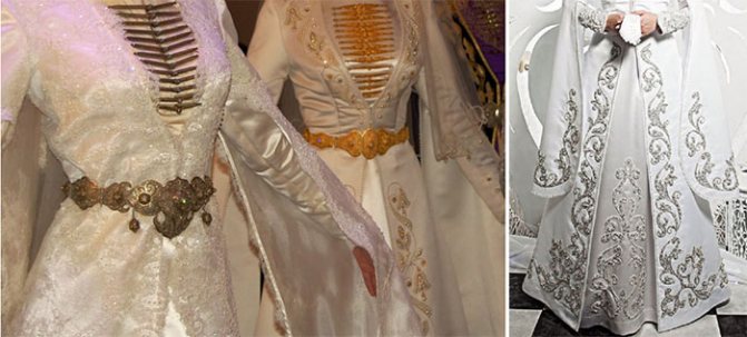 Свадебная наряды в Осетии всегда имеют роскошный и дорогой внешний вид. Они богато и искусно украшены. Нагрудники на платье невесты символизируют ветви Древа Жизни. Металлический пояс на талии защищает от злых сил, а узоры являются сильным оберегом.