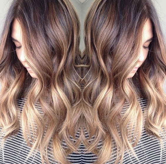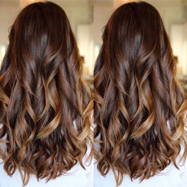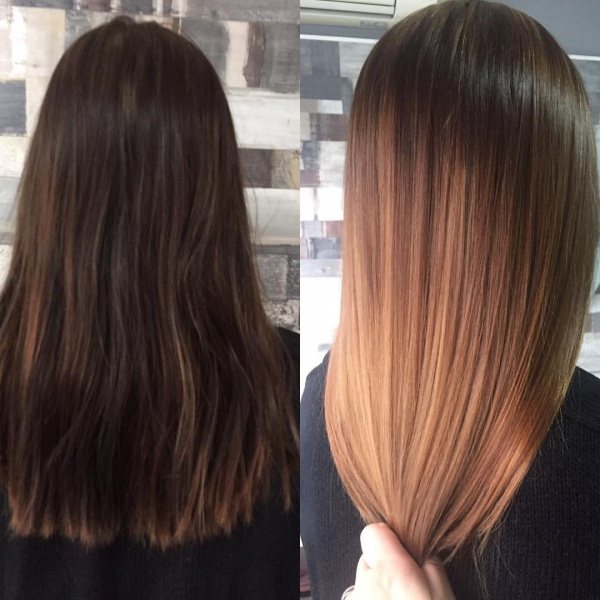 На тёмных волосах растяжка цвета видна лучше всего. Брюнеткам, шатенкам подходит много вариантов. Для девушек с каштановыми, коричневыми волосами рекомендуется богатая палитра красок: