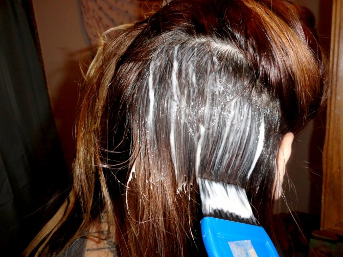 Процесс первичной окраски несколько отличается от подкрашивания корней. Необходимо учитывать важный нюанс: кончики длинных локонов светлее, чем середина и корни. Их нужно обработать кондиционером, чтобы замедлить процесс встраивания пигмента, так тон распределится равномерно и будет одинаковым по всей длине. После этого разводим краситель согласно инструкции и приступаем к самой процедуре.