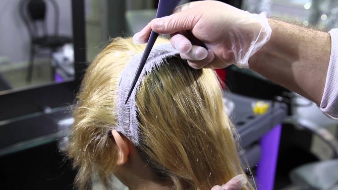Выполнение процедуры по продолжительности занимает столько же, сколько и первичное окрашивание. Разница заключается в том, что выдерживать состав основную часть времени нужно на корнях.