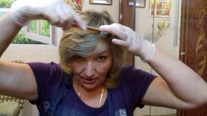 Немного задевать окрашенные волосы при закраске отросших корней допустимо. Когда работа полностью завершена, шевелюру расчесывают по длине для плавного «растягивания» и распределения тона от корней до кончиков по прядке. Обычно такую процедуру проводят через треть часа.