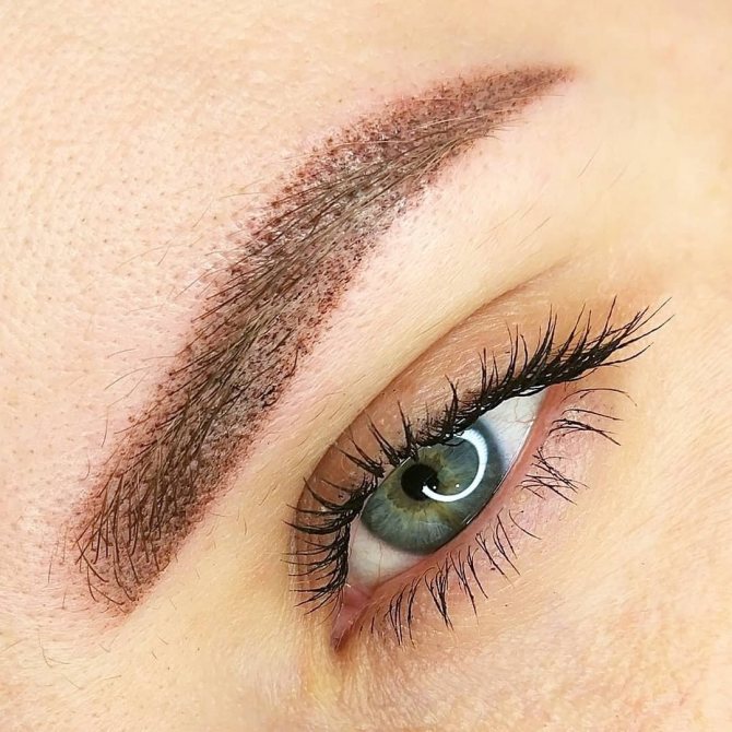Большая ошибка думать, что данный макияж портит родные волоски, разрушает луковицы, препятствует их росту. Пигмент вводят настолько близко к поверхности, что он не способен повлиять на более глубокие слои.