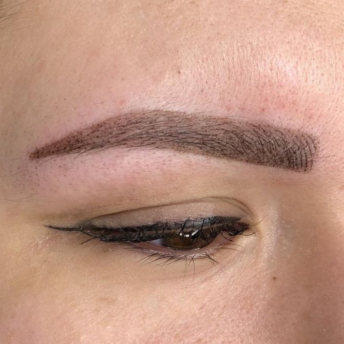 Сразу после завершения работы иглы, бровки намажут специальным средством, которое препятствует пересыханию. Однако через несколько часов оно впитается, и рана затянется плотной корочкой.