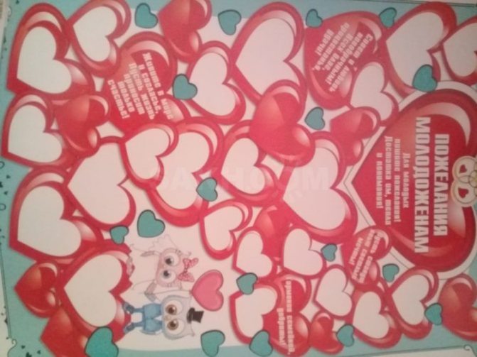 Традиционно молодым желают всех благ — любви, добра, крепкого здоровья, удачи и успеха. Креативно выглядят изделия, нарисованные родными и друзьями. Напишите красивым текстом различные пожелания любви, счастья, успеха, благосостояния. Можно пойти и таким путем – на стену повесить большой чистый ватман, а рядом положить маркер. Тогда у приглашенных гостей будет возможность подойти и зафиксировать на нем свои пожелания.