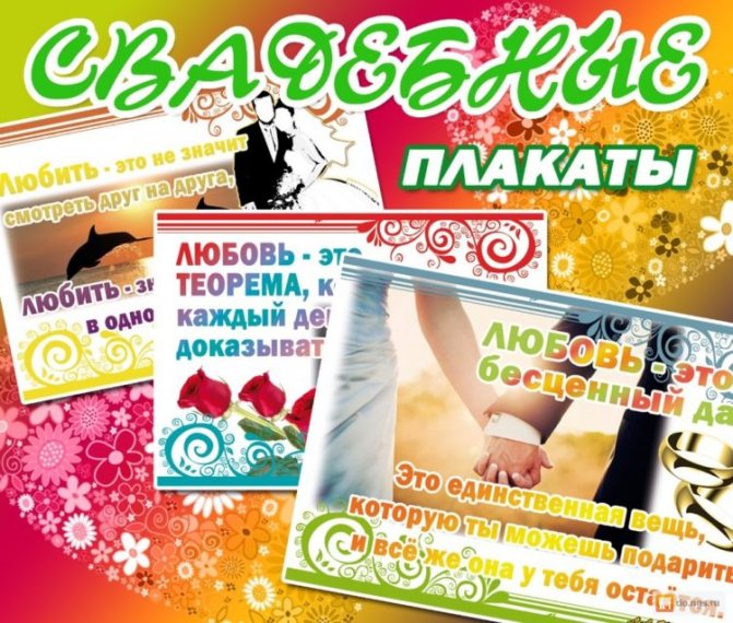 - Станут памятным подарком для молодоженов. Замечательно будет, если на плакатах есть фотографии или портреты жениха и невесты.