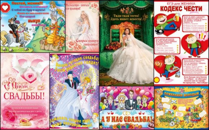 В этом видео – несколько вариантов свадебных плакатов для выкупа невесты: