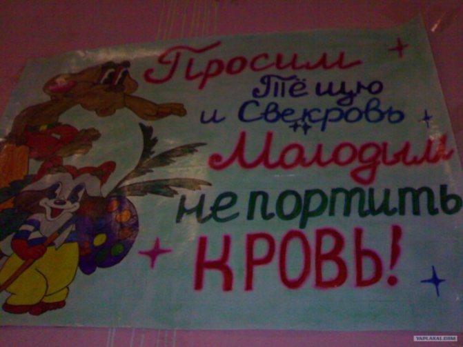 Не стоит слишком усердствовать с плакатами, чтобы их избыток не превратил подъезд невесты в выставку народного творчества. В данном случае важно чувство меры.