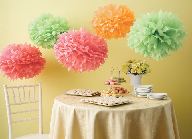 Украшение свадьбы бумажными помпонами своими руками