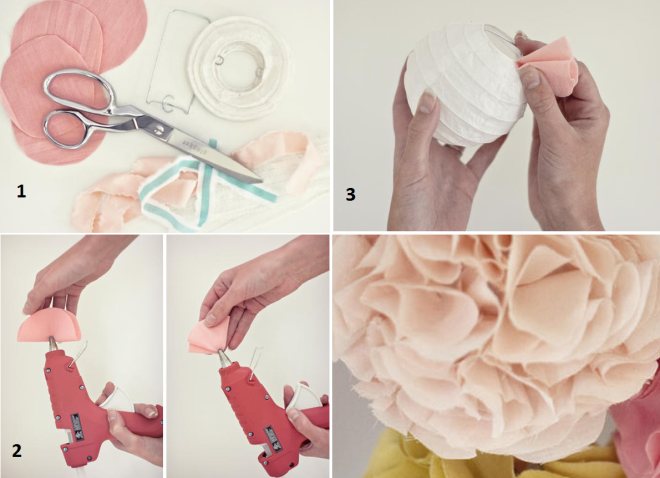 Помпоны свадебные из ткани и китайских фонариков