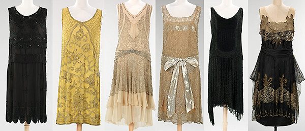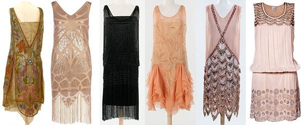 Идеальная длина – чуть ниже колен, на ладонь. Но если судить по фильму, платье для вечеринки в стиле Гэтсби может быть как в пол, так и экстремально коротким. Если платье-майка открывало ноги, декольте редко было откровенным – все сразу слишком вульгарно. А вот глубокий вырез на спине приветствуется. Подол в большинстве случаев косой, волнами, «рваный» или с бахромой, кокетливо подчеркивает озорство и легкость образа.