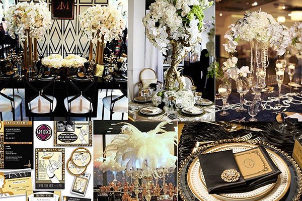 Перед организатором стоит непростая задача: блестящее, возмутительно дорогое на вид оформление без тени аляповатости. Высокий стиль Гэтсби, пусть в рамках вечеринки, предполагает наличие вкуса и чувства меры у хозяина дома. Пересмотрите экранизации: на первый взгляд, роскошный особняк таинственного «шпиона» будто утопает в праздничных декорациях. Но ни намека на перегруженность зритель не увидит.