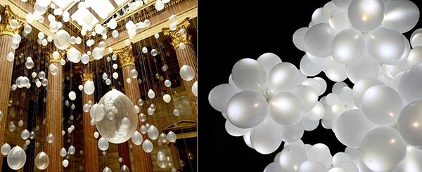 - полупрозрачные белые шары (самое начало фильма, первая вечеринка у Гэтсби) сделают атмосферу такой же легкой и праздничной, как настроения гостей! А еще они гармонируют с молочного цвета люстрами, т.е. целиком впишут такие абажуры в общую идею.