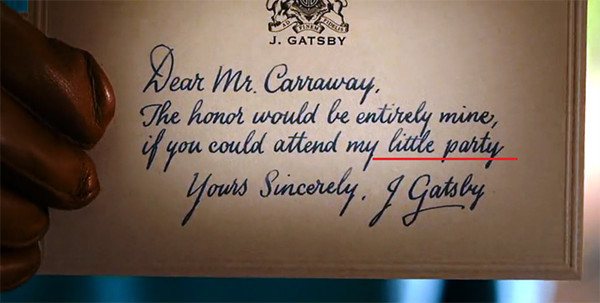 Единственное приглашение, которое отправил сам Гэтсби, выглядело банально – простая записка, ничуть не помпезная, ничем не выдающая масштабность предстоящего праздника.