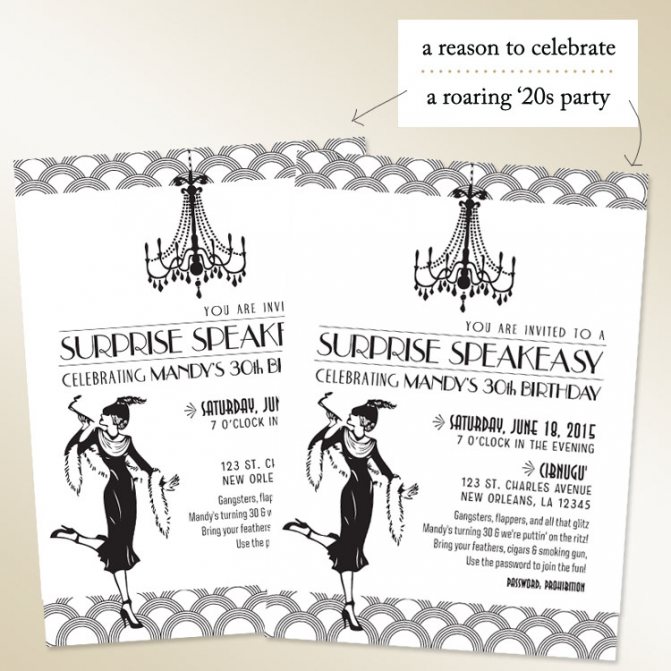 То есть приглашение на вечеринку в стиле Гэтсби, если ратовать за достоверность, это полная противоположность шикарной обстановке! Но вместе с тем оно элегантно – дорогая бумага, именной штамп, аккуратный почерк. Готовая идея, остается лишь купить перьевую ручку.