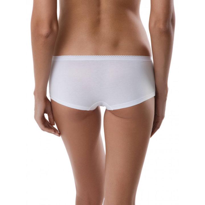 Эти ткани — натуральные, приятные к телу и позволяют свободно пропускать воздух. Это те самые необходимые требования к материалу для нижнего белья. Единственным недостатком трусиков-шортиков является их крой, который заметен под тонкой облегающей одеждой. Поэтому предпочтительнее надевать такие модели под более свободные наряды. Нередко мини-шорты используют в качестве ночного белья и потому их часто можно встретить в пижамных комплектах.