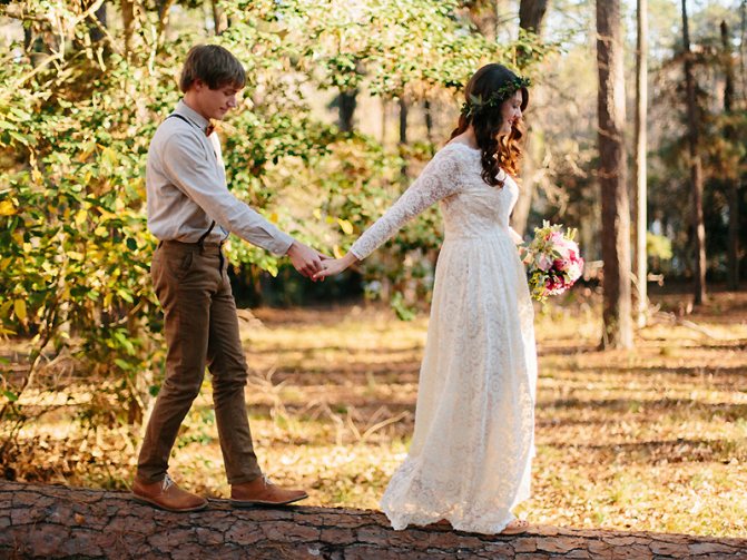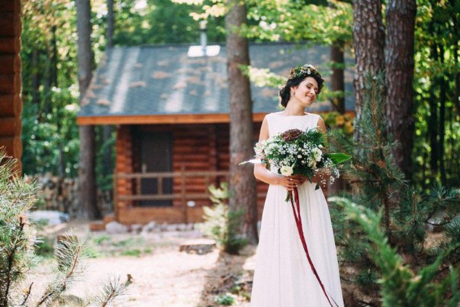 Первое и главное, о чем стоит сказать: фата не вписывается в рустикальный стиль, но ее отлично заменяет венок или ободок.