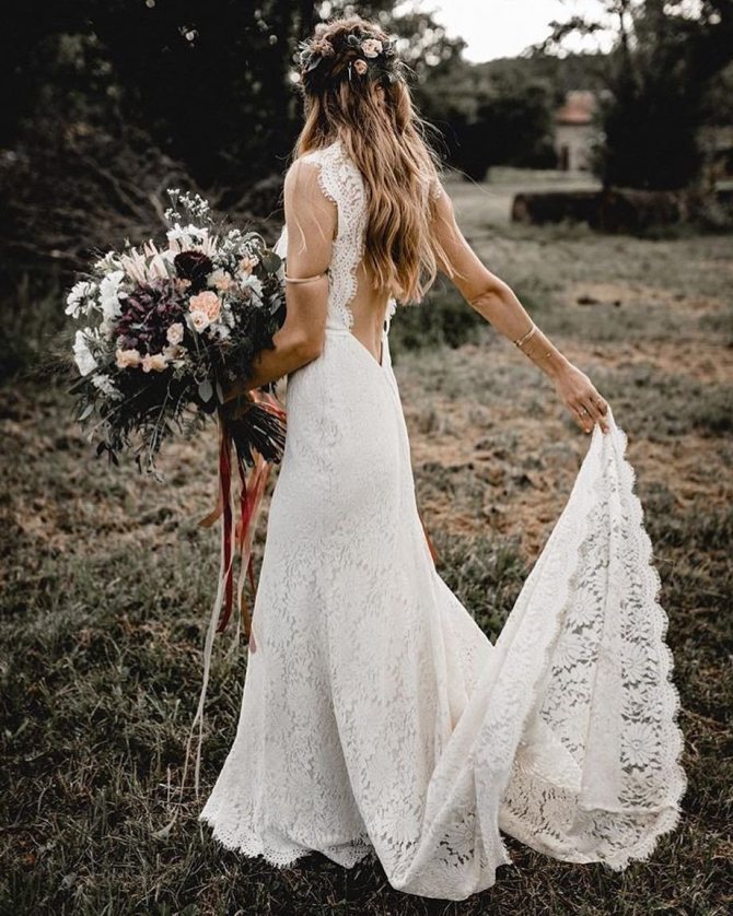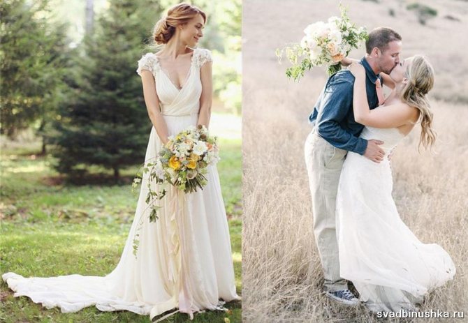 Свадебное платье в стиле Рустик должно быть лёгким, простым, удобным и ни в коем случае не пышным.