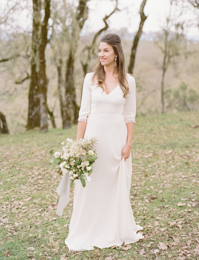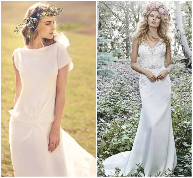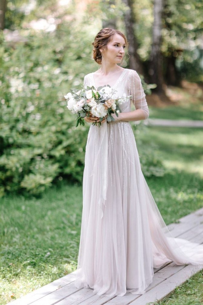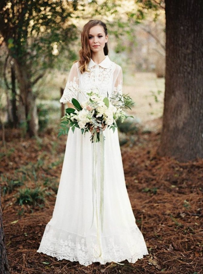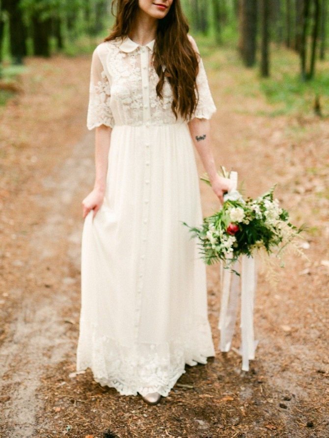 Струящееся и легкое платье свободного кроя идеально смотрится на рустикальной невесте и дарит несравненный комфорт в течение всего дня. Необязательно оставлять их простой крой в одиночестве. Можно добавить оригинальные элементы декора или необычные украшения из натуральных материалов.