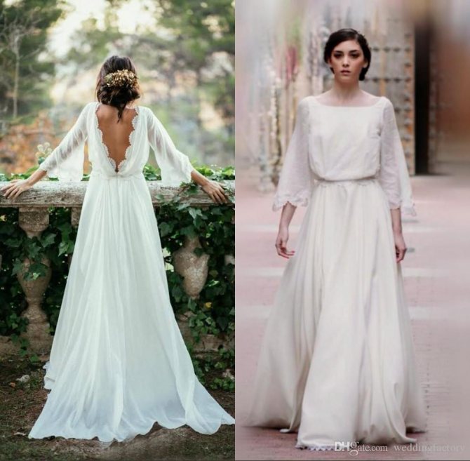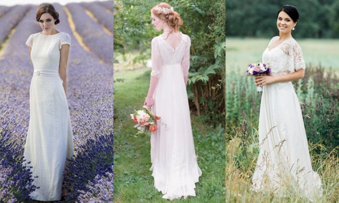 Очень трогательно и мило выглядят рукава-фонарики. Если же невесте нравятся более открытые платья, то можно надеть летний сарафан.