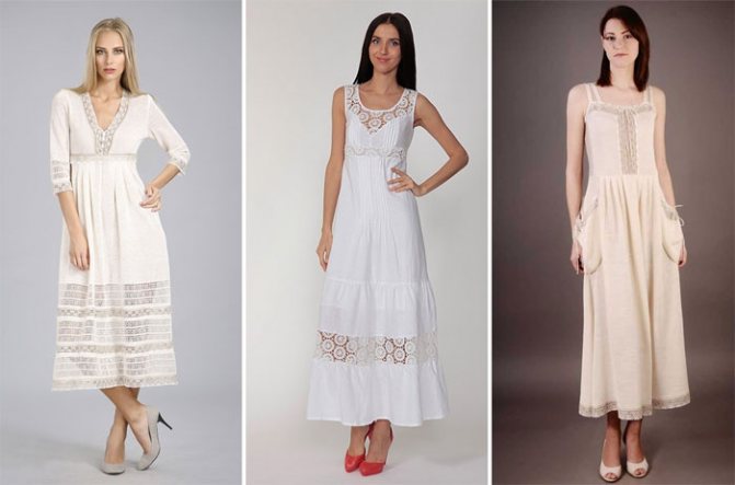 Обратите внимание! Даже простой льняной сарафан с кружевной отделкой способен превратиться в свадебное платье, если дополнить его красивым венком из цветов, крупными бусами или бело-голубым павлопосадским платком.