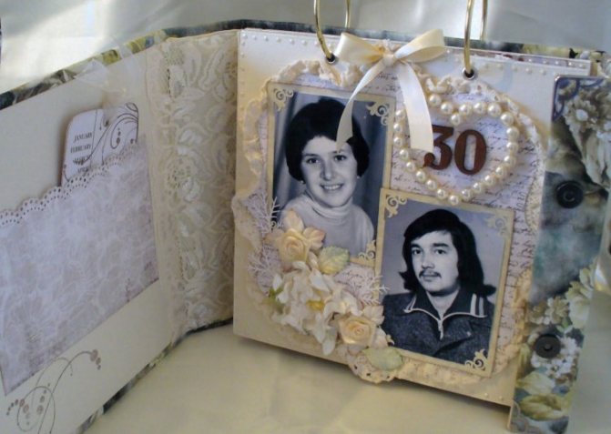 Фото и видео-презентация – подарки из разряда душевных, трогательных. Дети могут заглянуть в семейный архив, найти старинные фото со свадьбы, отыскать видео, которые наверняка записаны на кассеты, потом переписать их в формат DVD. На жемчужную свадьбу они могут привезти проектор, повесить полотно или простыню и в разгар праздника показать гостям красивую презентацию с обрывками прошлого виновников торжества – это точно понравится всем, включая супругов, и наверняка поможет им воспламенить былые чувства. Как это выглядит, смотрите в видео: