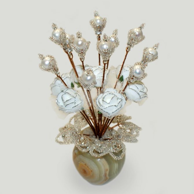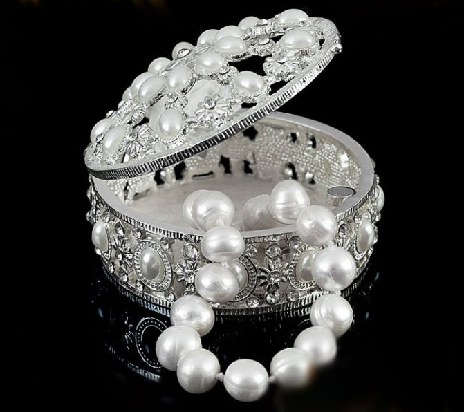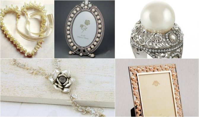 Оригинальные подарки, сделанные при помощи жемчуга, включают множество вещей: это всевозможные броши, браслеты, серьги, ожерелья для женщин, красивая фоторамка, украшенная жемчужными бусинками, зеркало и др. Жемчужные подарки смотрятся красиво, долговечны, будут радовать глаз красотой нежных бусин. Смотрите фото примеров презентов с использованием жемчуга: