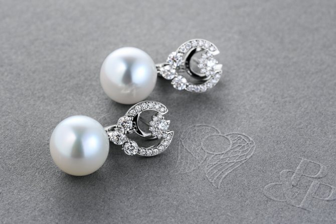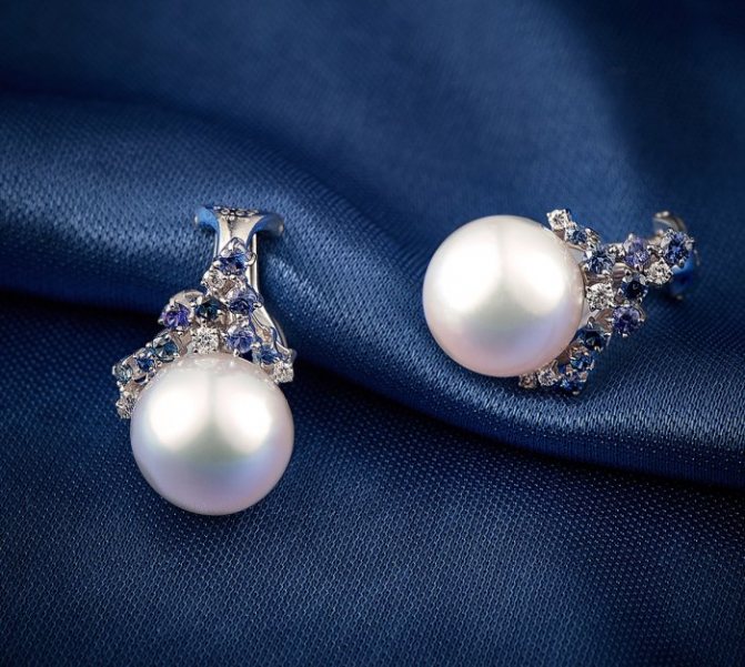- Серьги и браслет из драг металла с жемчужным украшением.