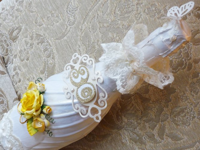 Оригинально можно преподнести бутылку шампанского. Вместо обычной упаковки оформите бутылку с помощью акварельной росписи или в стиле декупаж. Такой техникой владеют многие, кто любит творчество. Возможно, вы справитесь самостоятельно, если имеете склонности к художественному искусству. Или обратитесь к опытному мастеру. Он умело сделает роспись на бутылке шампанского в морском стиле.