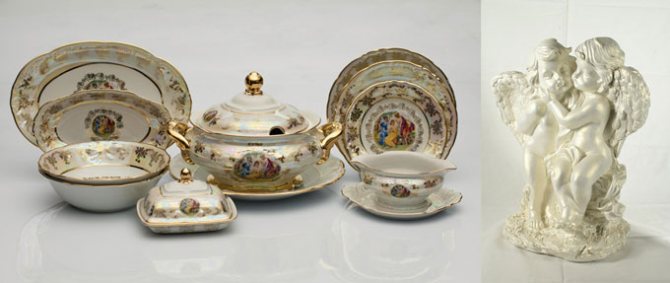 - Статуэтки из фарфора с перламутровым отливом (намек на жемчуг);